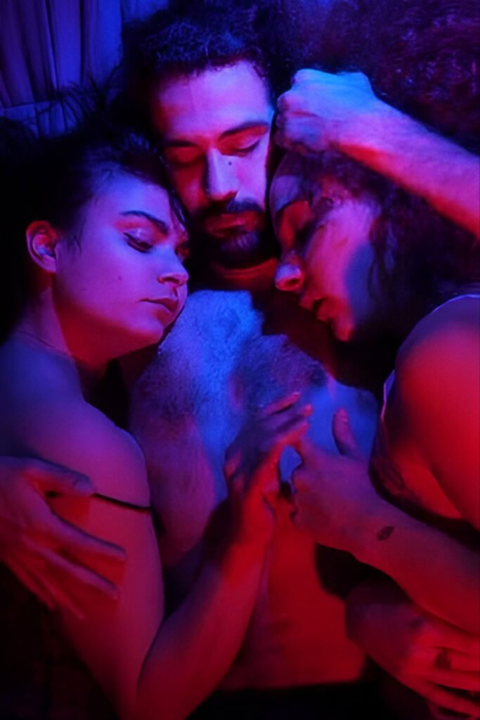Se crea una atmósfera cargada de tensión, miradas cruzadas y una energía que fluye entre los tres, elevando cada sensación.